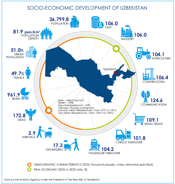 The country continued implementing the UN Sustainable Development Cooperation Framework 2021-2025 . The statistical collection "Sustainable Development Goals in the Republic of Uzbekistan-2023" was launched. Uzbekistan ranked 69th out of 166 countries in the annual ranking of sustainable development.