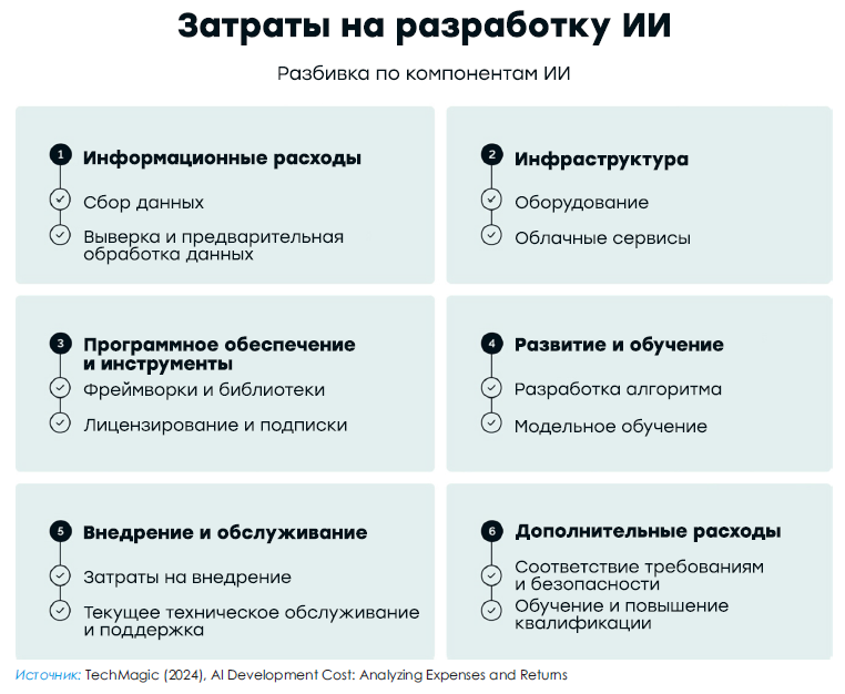 Источник: TechMagic (2024), AI Development Cost: Analyzing Expenses and Returns