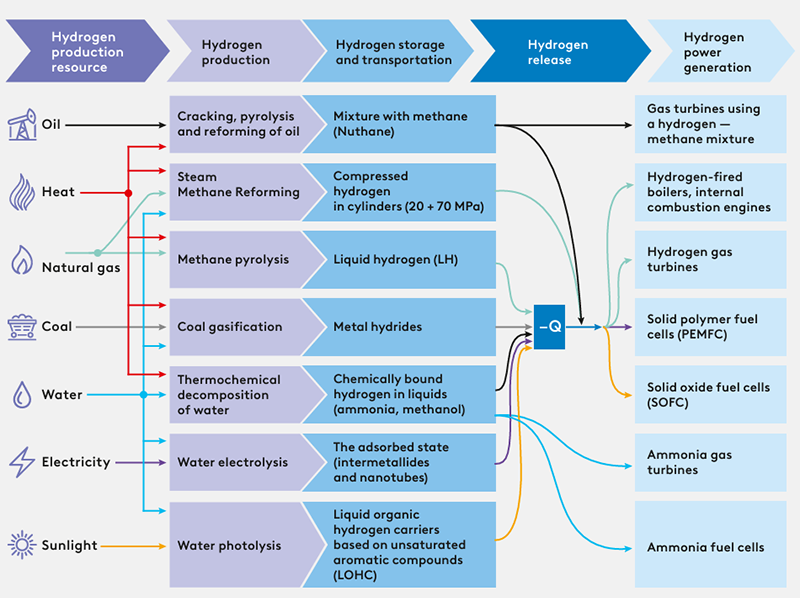 Hydrogen is the most common chemical element on Earth, which is found in water, air and solids. In world practice, there is a conditional classification of hydrogen by color, depending on the environmental friendliness of the process of its production. They distinguish: