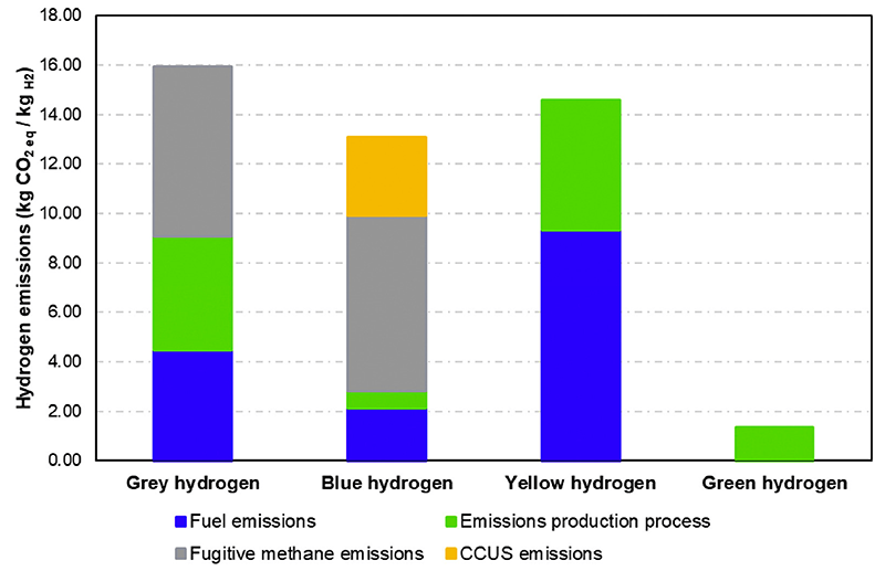 Comparison of emissions from various hydrogen (H2) production methods