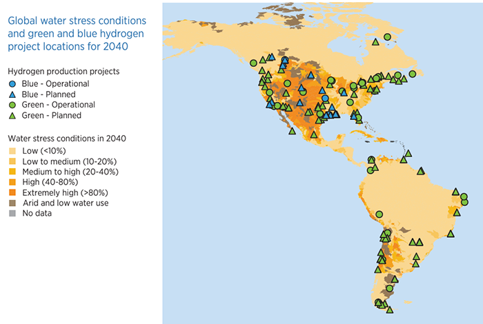 Although the use of deionized water produced by desalination plants can reduce the need for fresh water, it also causes the need to discharge residual brine into water sources and soil . In addition, despite the generally insignificant use of water for hydrogen production at the global level, it is important to take into account local conditions. More than 35% of the world's green and blue hydrogen production capacities (in operation and planned) are located in regions with acute water shortages.