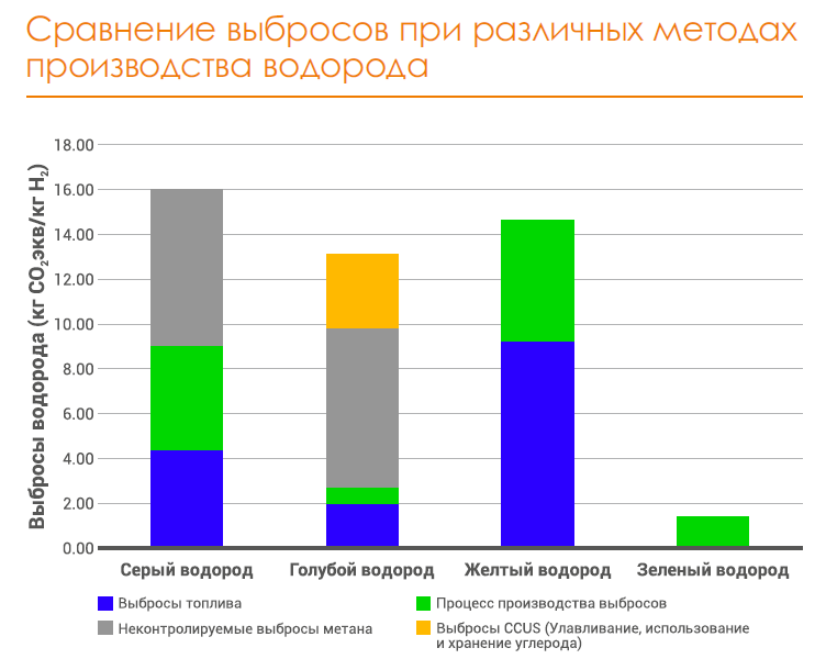 • серый водород, при получении которого из угля или метана выделяется наибольшее количество углекислого газа;