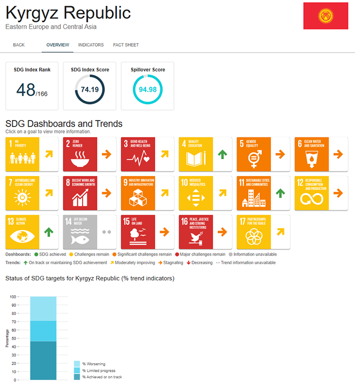 Kyrgyzstan was ranked 48th out of 167 countries in the annual sustainable development rating published by the UN and BertelsmannStiftung.