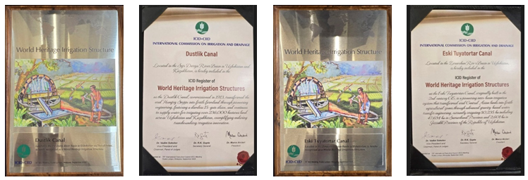 НИЦ продолжил работы по сохранению водного наследия и продвижению культурной ценности традиционных ирригационных систем Центральной Азии. В 2025 г. каналы «Дустлик» и «Эски Туятортар» – уникальные водохозяйственные сооружения возрастом более 100 лет – удостоены награды WHIS Award 2025 (Всемирное ирригационное наследие) и включены в реестр МКИД «Ирригационные сооружения в категории всемирного наследия». Это первые сооружения из Центральной Азии, получившие данный статус. Заявки-номинации подготовлены НИЦ в рамках проекта IKI «Региональные механизмы трансформации» и представлены Национальным комитетом Узбекистана по ирригации и дренажу. В рамках проекта также подготовлен Сборник научных статей «Водное наследие Центральной Азии: его ценность для нынешнего и будущего поколений», посвященный осмыслению, сохранению и популяризации уникального материального (рукотворные и природные объекты) и нематериального (традиционные знания, практики, ритуалы, память сообществ) водного наследия стран региона.