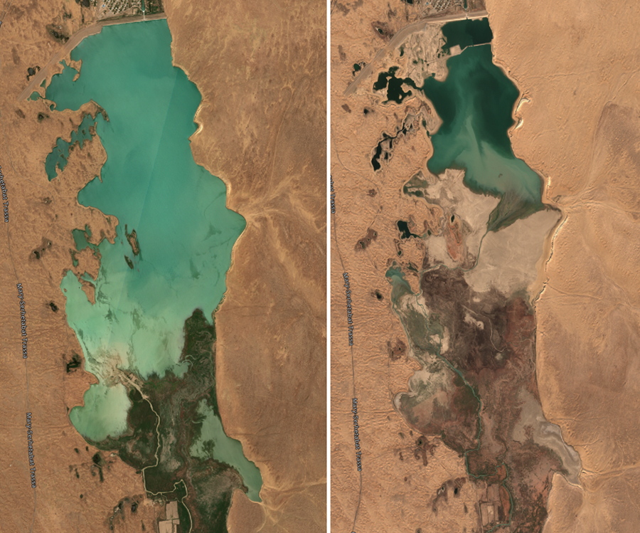 Засуха 2025 г. ухудшила водохозяйственную обстановку в бассейнах рек Атрек, Сумбар, Чандыр, Мургаб и Теджен: полностью пересохли водохранилища Мамметкёль и Делили (р.Атрек); площадь водной поверхности Сарыязинского водохранилища сократилась в 3,2 раза (р.Мургаб) - с 40,5 км2 (по состоянию на 1 мая) до 12,4 км2 (на 20 ноября); (3) обмелело водохранилище Достлук (р.Теджен) - с 10,3 км2 (на 1 июня) до 5,8 км2 (на 20 ноября).